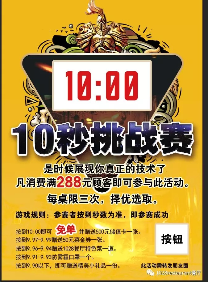 消費滿288元即可參與十秒挑戰(zhàn)賽,好禮不斷!(按到10.00秒即可免單)